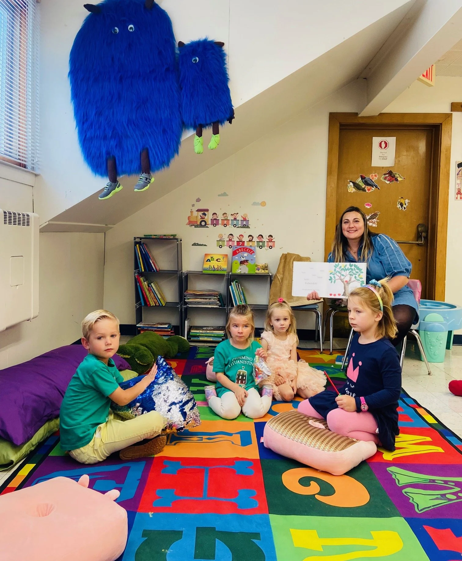 Taip pat mokykloje veikia biblioteka, turime daug nuostabių lietuviškų knygelių.