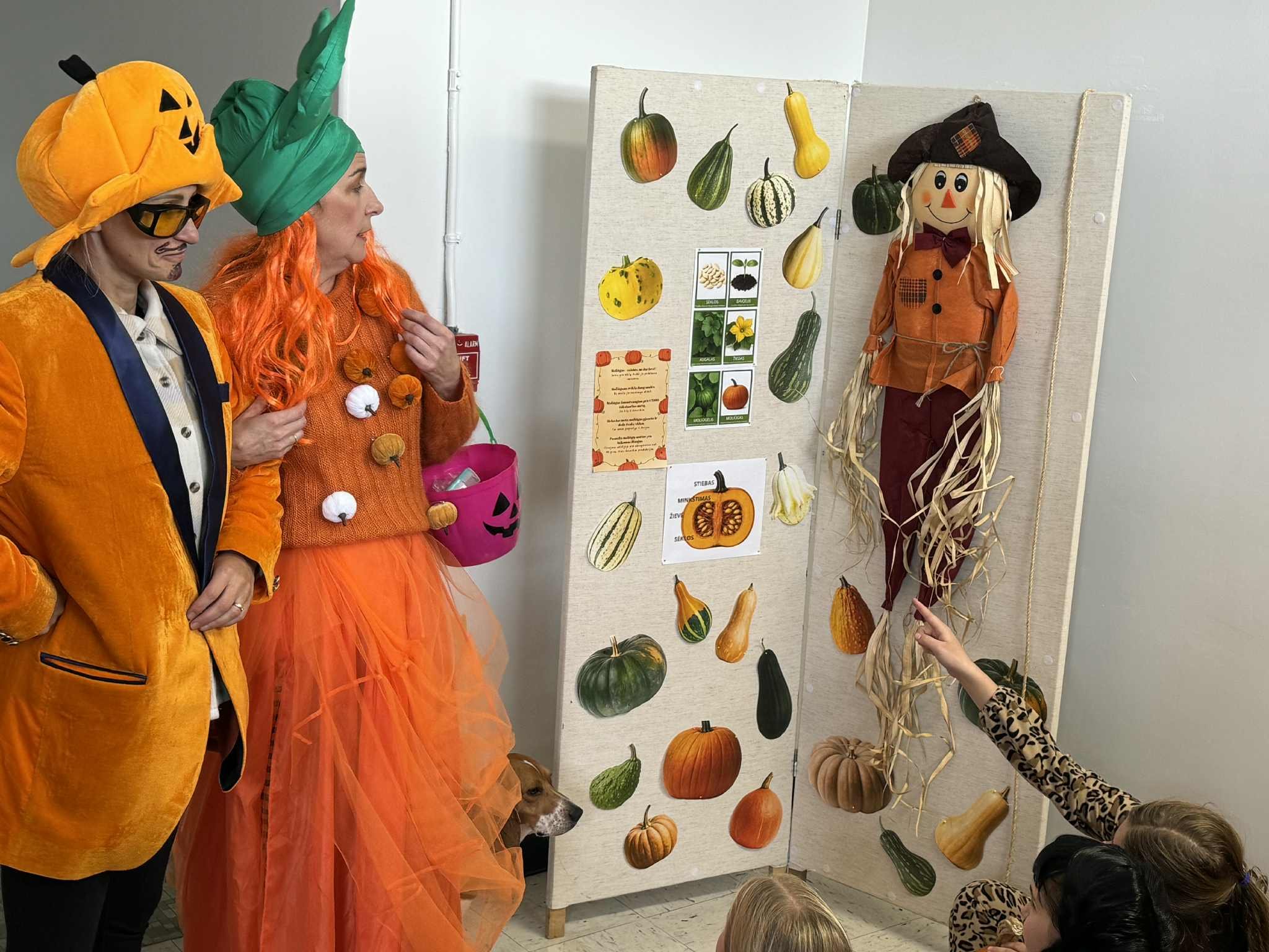 Ar žinote, kad Ilinojaus valstija yra laikoma moliūgų sostine? Būtent iš šio regiono daugiausia moliūgų išvežiojama po visą Ameriką. Atėjus rudenėlio laikotarpiui, kur tik jų čia nepamatysi! Kur beeitum, ten moliūgas – jais puošiami namai, ofisai, parduotuvės, restoranai, net mokyklos. Todėl ir mūsų mokykloje apsilankė ponaitis moliūgas su moliūgiene ir mokiniams papasakojo, iš kur jie atsirado ir kaip tie moliūgai išdygsta nuo mažiausios sėklytes iki didžiausio moliūgo. O kas nėra skanavęs moliūgo sriubos ir pyrago! Davė mokiniams paragauti moliūgo sėklų. Pasirodo, jas valgyti labai sveika. Mokiniai taip pat pasidalino ir savo turimomis žiniomis apie moliūgus, diskusijos virte virė. Kas tas moliūgas – daržovė ar vaisius? Po visų svarstymų mokiniai pasiraitojo rankoves ir kibo į darbą – išsiskaptavo po tikrų tikriausią moliūgą! Visam tam smagumo pridėjo dar ir tai, kad mokiniai į mokyklą sugužėjo ne šiaip apsivilkę, o pavirtę į visokius savo mėgstamus herojus. Juk knieti pasirodyti, kas kokį kostiumą turi ir kuo vilkės per artėjančią Helovino šventę. Štai taip spalvingai pabaigėme paskutinį spalio šeštadienį!