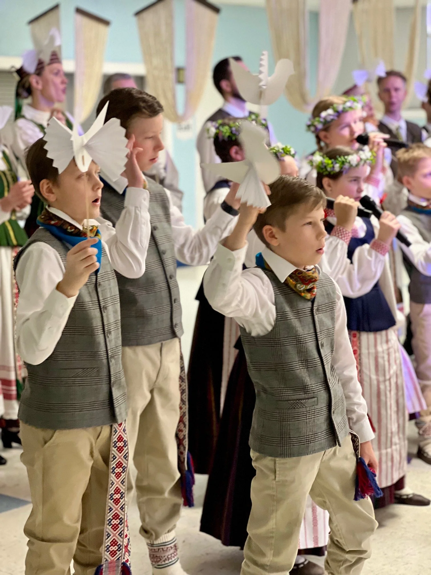 Mokytojos ir tėveliai patys ruošė dekoracijas, dėliojo iš šiaudų supintus paukštelius ir didesnes kompozicijas pagal pasirinktą gamtos ir senųjų pagonybės simbolių temą. Įėjus į salę sunku buvo patikėti, kad esame kažkur už Atlanto, toli nuo Lietuvos. Lietuviškumu ir lietuviška gamta dvelkiančios dekoracijos bei mokinių sukurta programa suteikė savitą gyvumo ir artumo su Lietuva jausmą. Senų papročių dvelksmas, atliekamos senoviškos dainos tarsi jungė praeitį su dabartimi.