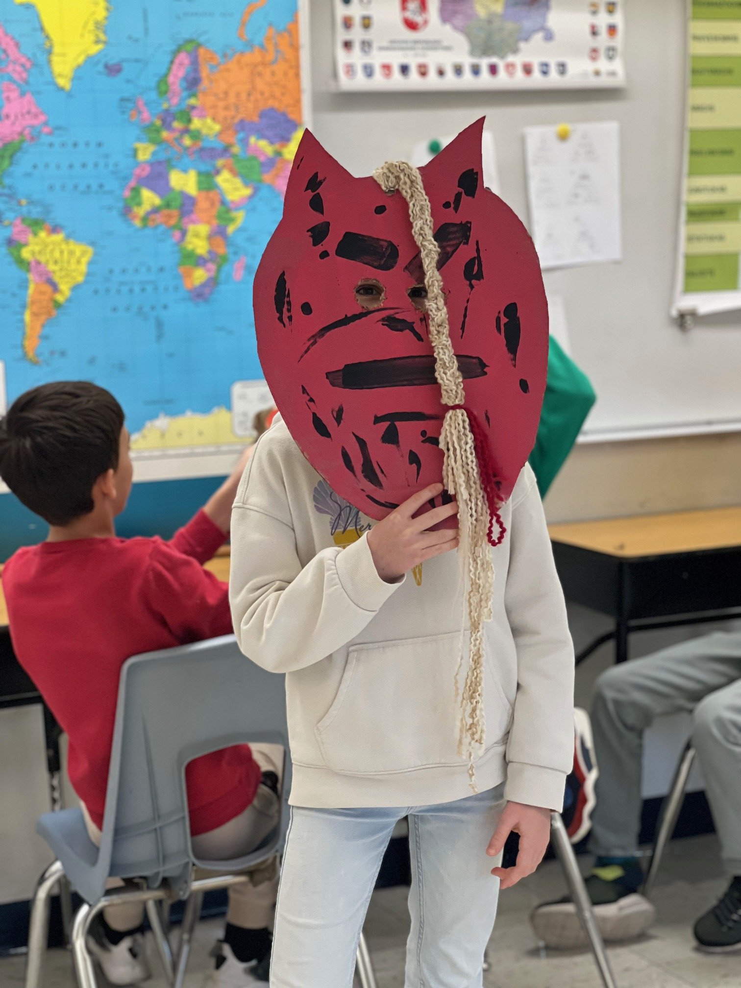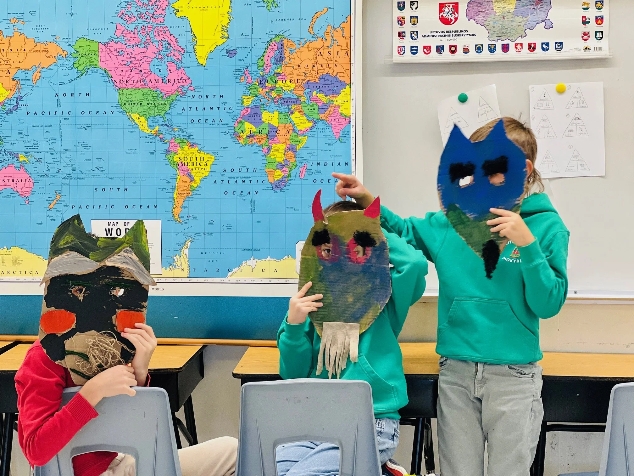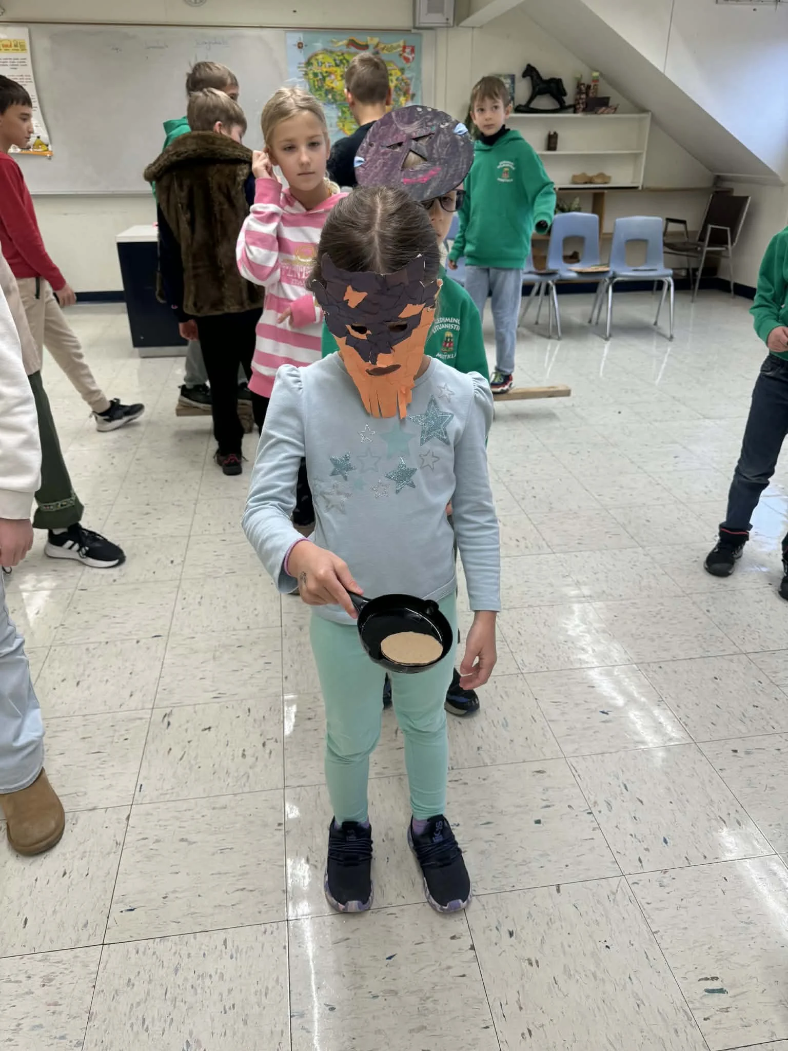 Šie metai kitokie nei praėję, kai per Užgavėnes mokyklos patalpoje visi vaišinomės savo susineštais blynais, susikibę už rankų šokome ir žaidėme žaidimus. Ir nors šiandien surengti tokios pačios šventės negalime, mūsų išradingieji mokytojai vis viena randa būdų įkvėpti mokinius kurti ir puoselėti Lietuviškas tradicijas.