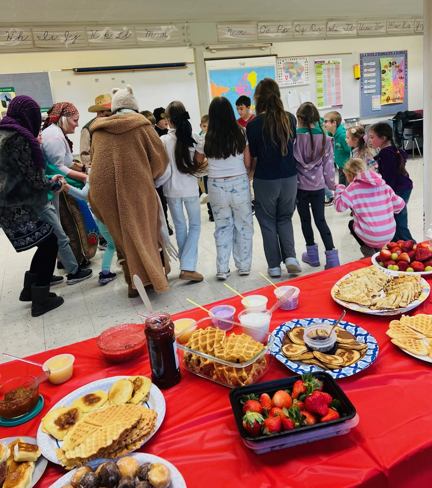 Šiandien mokykloje mokytojos papasakojo vaikams, kokia svarbi lietuvių tradicijose yra duona, koks ilgas jos kelias nuo grūdų iki kepalėlių. Nė vienas iš valgių nebuvo taip gerbiamas, kaip duona. Šalia duonos ant stalo nebuvo galima dėti šukų, kepurės ar skarelės. Duonos kepalo nelaikydavo apversto. Pagal iš kartos į kartą perduodamus receptus ne vieną dieną trunkantis ruginės duonos ruošimas laikytas ypatingu ritualu. Šiandien nors parduotuvėse duonos pasirinkimas yra nemažas, bet tikrosios ruginės duonos be cukraus ir priedų surasti ne taip ir lengva.