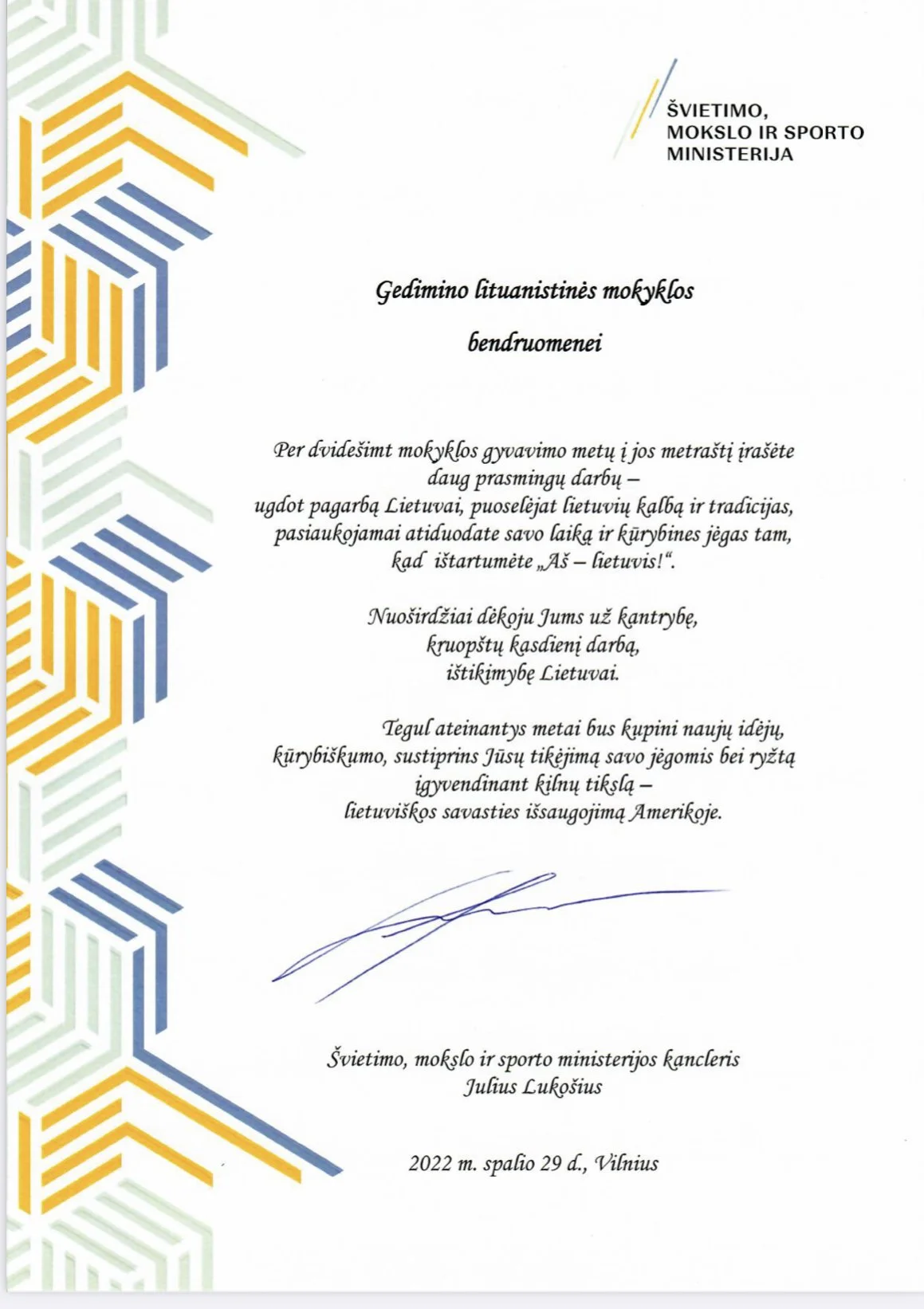 GEDIMINO LITUANISTINĖS MOKYKLOS 20 METŲ JUBILIEJUS (2022-10-29)